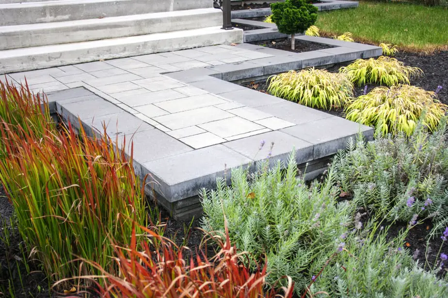 A Zen home is meant to be relaxing, balanced, and visually appealing. Picking different colors for your plants is the main element of this Zen home landscaping design. The tile and stone steps lead to colorful plant beds that will change color throughout the year.