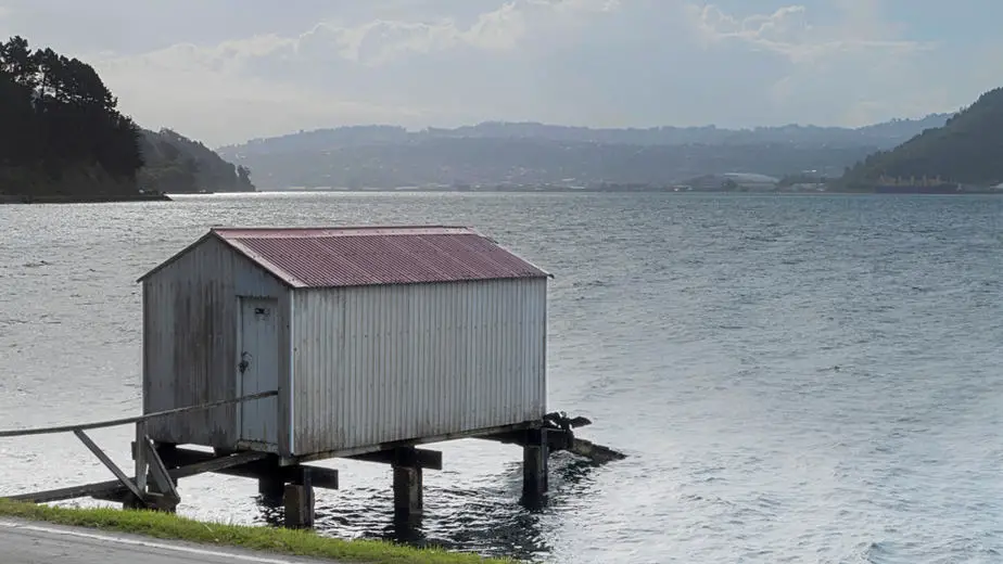 Who says your shed has to be on land? Here is a tin boat shed in New Zealand. The weathered tin will last for years as it protects generations of boats from the harsh elements of sun, wind, and water.